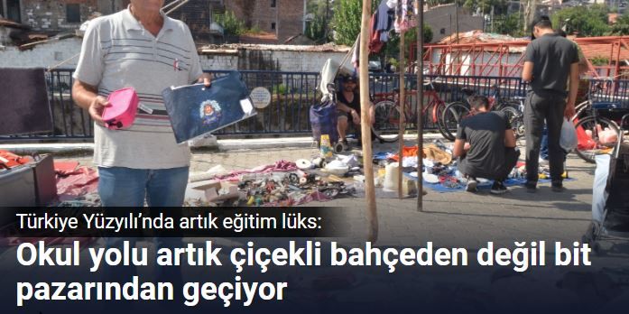 “Okula yeni başlayacak minik evlatlarımız da gene anne, babasıyla bit pazarının yolunu tutuyor. Hem minik yavrularımızın hem gençlerimizin içine düştüğü bu zor durum bizleri çok üzüyor. Durum gerçekten çok vahim. İnsanlar artık ucuz olan pazarlara bile gidemeyip pazarda yerlere atılan yiyecekleri topladıklarını görmek ne kadar acı veriyorsa, ilkokula yeni başlayacak çocukların üzerinde başka çocuklarının isimlerinin yazılı olduğu çantaları, kalem kutularını alıp onlarla sevinmeleri de aynı acıyı yaşatıyor”