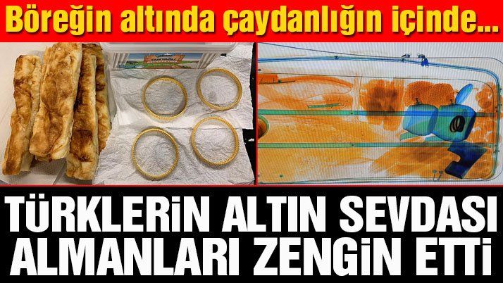 Düsseldorf Havalimanı’nda, ev yapımı böreklerin içine yerleştirilen altınlar bulundu. Bir kişi, “Uçakta uyuyorum” diyerek taşıdığı yastıkların içinde onlarca bilezikle yakalandı.
