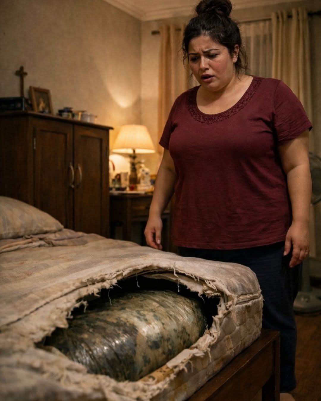 Eşim iş seyahatine gittiğinde sonunda yatağı kesmeye karar verdim… ve içinde bulduğum şey kalbimi durduracak gibiydi.