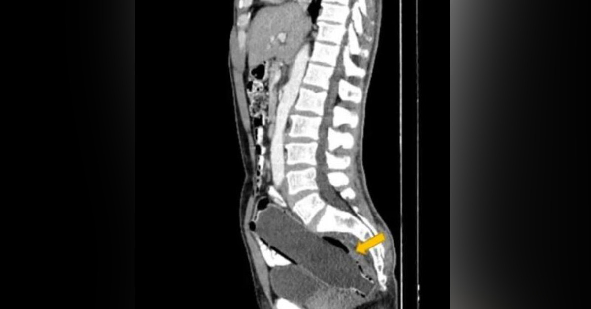 İsmi belirtilmeyen 50 yaşında bir adam 3 gün boyunca tuvalete çıkamamasından sonra eşiyle birlikte hastaneye gitti. Adamı muayene etmeye başlayan doktorlar, muayene esnasında bir sorun göremedi. Adamın başka bir şikayeti olmadığı için röntgen filmi istedi. Röntgen filmi çekildikten sonra gerçek ortaya çıktı.