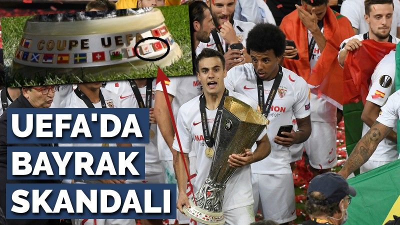 Sevilla'nın havaya kaldırdığı kupada, Türk bayrağı ile tüm adayı temsil ediyormuş gibi gösterilen Güney Kıbrıs Rum Yönetimi'nin sözde bayrağının yan yana konması dikkat çekti.