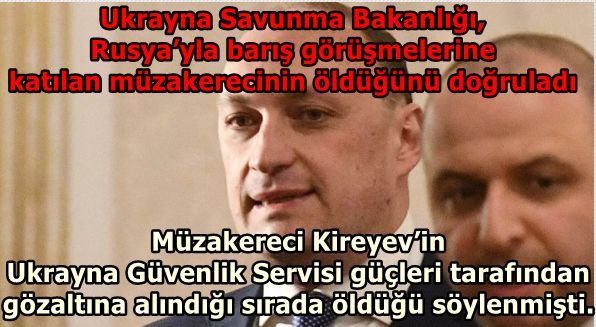Bu sırada, Ukrayna ile barış görüşmelerinde Rusya delegasyonunun üyesi olan Leonid Slutskiy, bir canlı yayındaki açıklamasında, Ukraynalı müzakereci Kireyev’in öldürüldüğüne ilişkin güvenilir bir bilgi bulunmadığını ifade etti.
