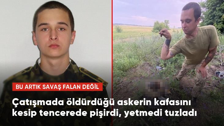 Rusya'nın 24 Şubat'ta Ukrayna'ya karşı başlattığı savaş hız kesmeden devam ederken, cepheden korkunç görüntüler sunulmaya devam ediyor. Bugün internete düşen bir fotoğrafta, Ukraynalı Nazi sempatizanı bir askerin öldürdüğü Rus askerinin kafasını keserek tencerede pişirdiği ve sosyal medyada meşhur olan tuzlama hareketini yaptığı görüldü.