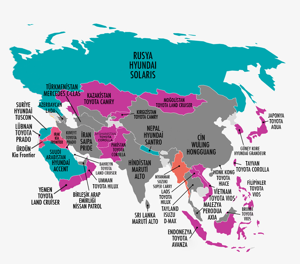 Peki, dünyadaki bütün bu otomotiv pazarlarında ülke ülke en çok hangi model satılıyor?