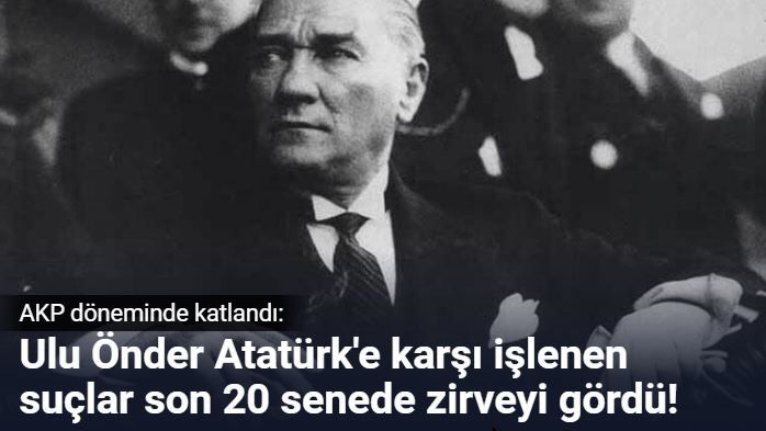 Adalet Bakanlığı’nın açıkladığı veriler, AKP iktidarında Atatürk aleyhine işlenen suçlarda büyük artış olduğunu ortaya koydu. 20032019 yılları arasında 5816 sayılı Atatürk Aleyhinde İşlenen Suçlar nedeniyle sanık sandalyesine oturan kişi sayısı 5.244’e ulaştı. 19872017 yılları arasında sanık olan kişi sayısı ise 7.318 olarak kayıtlara geçti. 2019 yılında Atatürk aleyhine işlenen suçlar tavan yaptı.