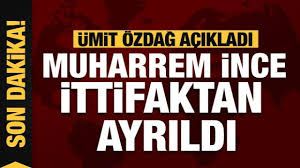 Zafer Partisi Genel Başkanı Ümit Özdağ, Memleket Partisi Genel Başkanı Muharrem İnce ile oluşturacakları ittifakın dağıldığını söyledi. Özdağ, "Muharrem İnce, 24 saat önce ittifaktan ayrıldığını açıkladı." diye konuştu.