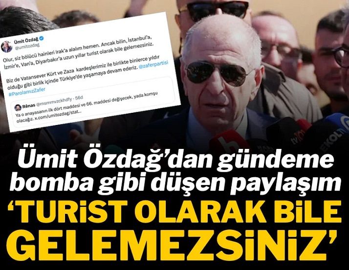 Özdağ, "Siz bölücü hainleri Irak’a alalım hemen. Ancak bilin, İstanbul’a, İzmir’e, Van’a, Diyarbakır’a turist olarak bile gelemezsiniz."