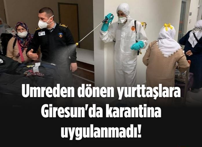 CHP Aydın Milletvekili Süleyman Bülbül, umreden dönen bazı yurttaşların coronavirüs nedeniyle karantinaya alınmadığını ve evlerine gönderildiğini söylemişti. Birçok ilden benzer uygulama iddiaları gelmişti. Konuyla ilgili ilk resmi açıklama, iddiayı doğruladı. Giresun İl Müftüsü Muhittin Oral, 2'si müftülük görevlisi olan 52 kişinin evlerinde "kendilerine dikkat ederek" süreci geçireceklerini açıkladı. Öte yandan önceki gün evlere gönderilen umre kafilesinden iki kişi solunum yetmezliği ve yüksek ateş sebebiyle hastaneye sevk edildi.