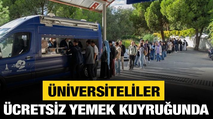 Öğrenciler, İzmir Büyükşehir Belediyesi’nin ücretsiz yemek dağıtımı yapan araçlarının önünde uzun kuyruklar oluşuyor. İzmir’de, üniversite öğrencilerine yönelik 6 devlet üniversitesi kampüsü yakınında ücretsiz sıcak yemek dağıtımı yapılıyor. Market fiyatlarının katlandığı, dışarda yemek yemenin ise adeta hayal olduğu bu dönemde öğrenciler, burslar, sosyal yardımlar ile yemek gibi ayni desteklerle öğrenimlerini tamamlamaya çalışıyor.