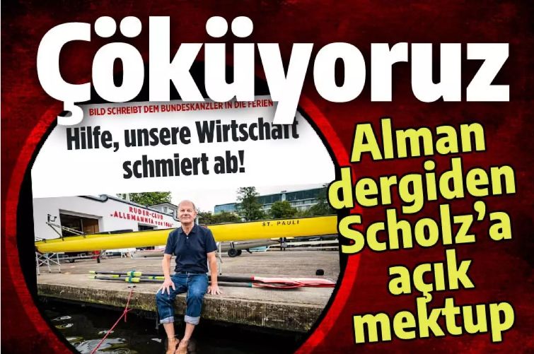 lman Bild dergisinin Başbakan Olaf Scholz'a hitaben yayınladığı açık mektup, Avrupa ekonomisinin dinamosu olarak gösterilen Almanya'da işlerin iyi gitmediğini ortaya koydu. 65 yaşındaki Şansölye Scholz'e hitaben yazdığı mektupta Bild, "Yardım edin, ekonomimiz çöküyor!" başlığını kullandı.