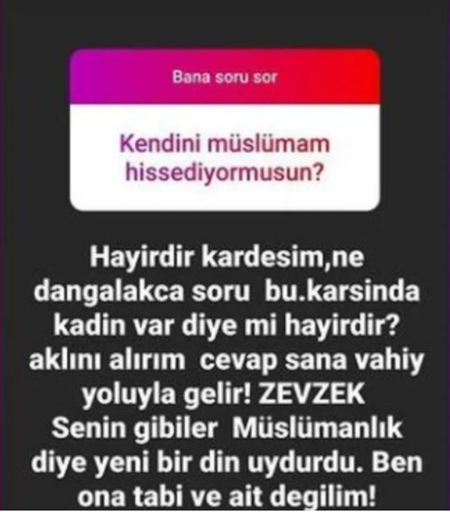 Deniz Akkaya, Instagram hesabı üzerinden takipçileriyle soru-cevap etkinliği yaptı. Kendisine dine dair soru soran takipçilerinden birine de öfke kustu.