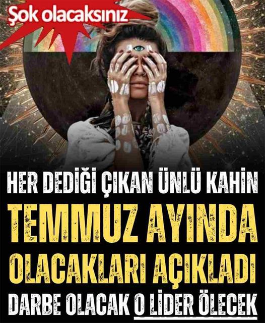 Michaela Astro: "Temmuz ayına dikkat, felaketler yaşanacak!" Ünlü astrolog Michaela Astro temmuz ayına ilişkin üç büyük kehanetini açıkladı. Darbe Olacak O Lider Ölecek.. Ayrıntılar İçeriğin Devamındadır..İçeriğin Devamını Okumak Ve Görmek İçin Lütfen Gö'rsele D'okununuz..