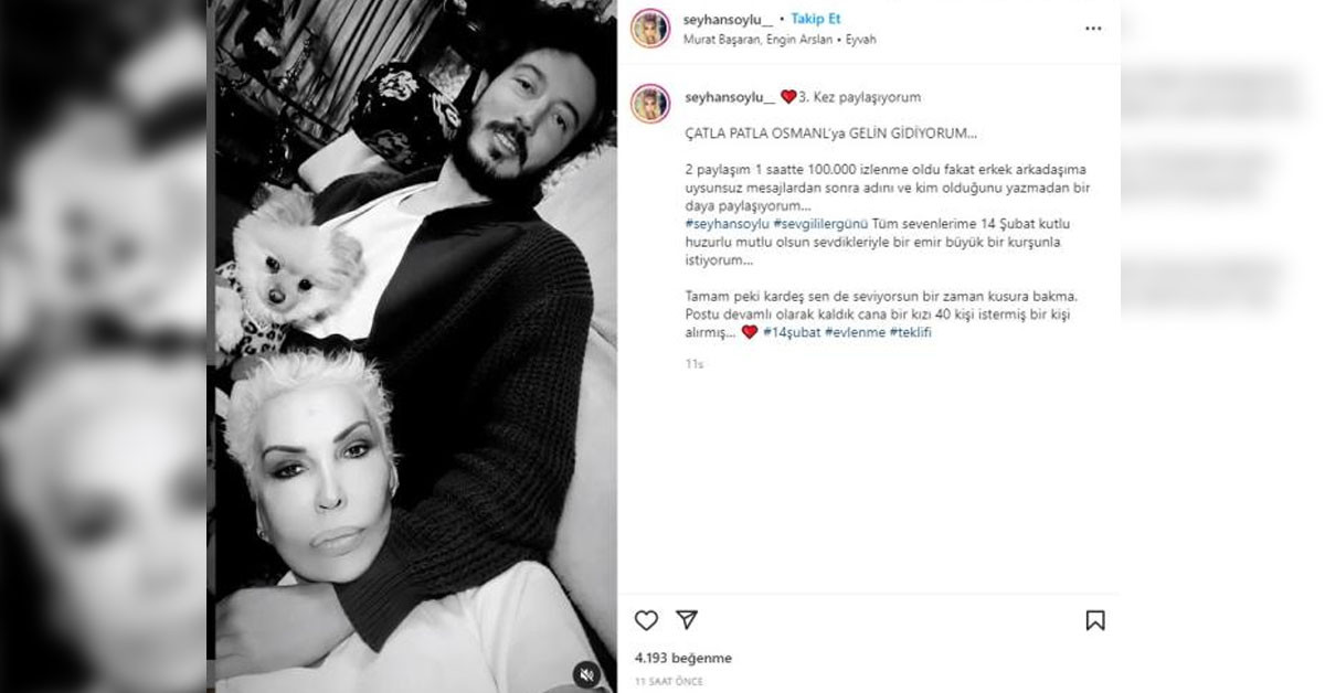 Ünlü sanatçı Seda Sayan yedinci kez nikah masasına oturuyor. Dün canlı yayında sevgilisi Çağlar Ökten'den evlilik teklifi aldığını '14 Şubat'ta evlilik teklifi aldım. Bu teklife cevabım ne oldu, merak eden var mı? İnşallah sonsuza kadar evet.' sözleriyle duyuran Seda Sayan düğünü tarihini açıkladı. Henüz hamile olduğuna dair bir açıklama gelmedi.