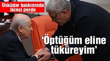TBMM’deki yemin töreninde MHP lideri Bahçeli’nin elini öpen İYİ Parti Genel Başkan yardımcısı Musavvat Dervişoğlu, Üsküdar baskını sonrası, ”Aile terbiyem ve törem gereği öptüğüm o eline tüküreyim” dedi. MHP’liler bu söze çok sinirlendi. Ankara Milletvekili Sadir Durmaz, ”Ben de senin kalıbına tüküreyim” açıklaması yaptı. İstanbul il yönetim kurulu üyesi Ünal Yaşaroğlu ise, ”Ben senin camış derisine dönmüş suratına tüküreyim” dedi.