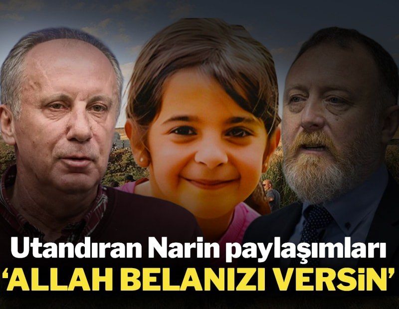 Muharrem İnce X hesabından yaptığı paylaşımda, "Hepimizin içini dağlayan Narin’in katledilmesi olayını siyasallaştırmaya ve bu acıdan siyasi rant devşirmeye çalışan DEM’liler Allah belanızı versin!Bir çocuğun alçakça katledilmesini fırsat bilerek Kürdistan gevelemesi yapanlar, bu suça hepiniz ortaksınız! Öğretmenleri katledenlerin arkasında durduğunuz için o topraklarda cehalet, iş makinalarını yaktığınız için o topraklarda sefalet hüküm sürüyor! Evet Allah belanızı versin! O çocuğun ve hikayesini bilmediğimiz onun gibi yüzlercesinin ahı sizi tutsun!" ifadesini kullandı.