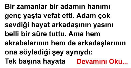 Bir zamanlar bir adamın hanımı genç yaşta vefat etti. Adam çok sevdiği hayat arkadaşının yasını belli bir süre tuttu. Ama hem akrabalarının hem de arkadaşlarının ona söylediği şey aynıydı: Tek başına hayata devam edemezsin; hem bak, küçük bir çocuğun evde bekliyor, ona bakacak bir anneye ihtiyaç var. Böylece adam yeniden evlendi. Evlendiği kadın çok iyi niyetli, şefkatli bir insandı.