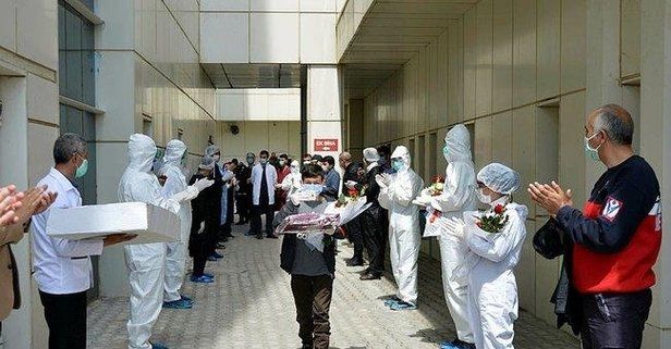 Sağlığına kavuşan hastalar, doktor ve hemşirelerin alkışları eşliğinde çiçeklerle taburcu edildi.