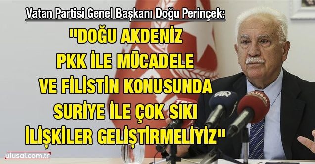 Özellikle Suriye vurgusu yaptı Perinçek…. Suriye’nin hem Doğu Akdeniz, hem terör örgütü PKK ile mücadele hem de Filistin sorununda kilit ülke olduğunu vurguladı.
