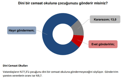 Çocuğunu bir cemaat okuluna 'gönderirim' diyenlerin oranı ise yüzde 9,7.