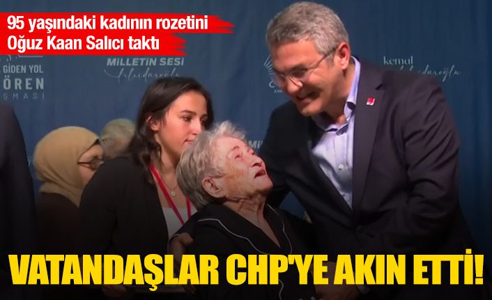 Konuşmaların ardından CHP Genel Başkan Yardımcısı Salıcı, 1000 yeni üyeyi temsilen, vatandaşlara CHP rozetlerini taktı. Partiye yeni üye olanlar arasında 95 yaşındaki Ayşe Çakır da vardı.