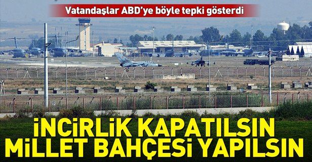 ABD tarafından Türkiye’ye uygulanan skandal yaptırım kararlarının ardından vatandaştan duruma sert tepki geldi. Sosyal medyada örgütlenen vatandaşlar “İncirlik Üssü kapatılsın” çağrısı yaparken, bazı kişiler ise İncirlik yerine Millet Bahçesi yapılmasını önerdi..