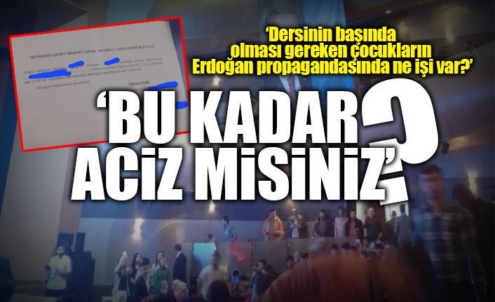 “İnsanları rızası dışında parti üyesi yaptıkları yetmedi, şimdi de çocuklarımızı yalanla teknoloji etkinliği diye parti propagandasına götürüyorlar. Böyle siyaset olmaz” diye tepki gösteren Kılıç, “Dersinin başında olması gereken çocukların Erdoğan propagandasında ne işi var? Bu kadar aciz misiniz?” ifadelerini kullandı.