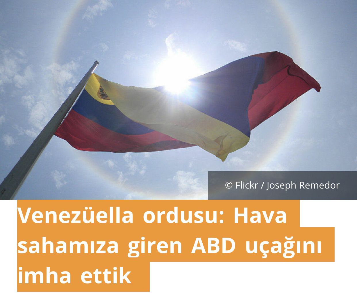 Venezüella Silahlı Güçlerinin Stratejik Operasyon Komutanlığı’nın Twitter açıklamasında, “Birleşik Hava Uzay Savunma Komutanlığı, 8 Temmuz sabaha karşı ülkenin hava sahasında ABD numaralı hava aracı tespit etti ve yasalara uygun olarak savaş uçaklarımızla etkisiz hale getirdi” ifadesine yer verildi.