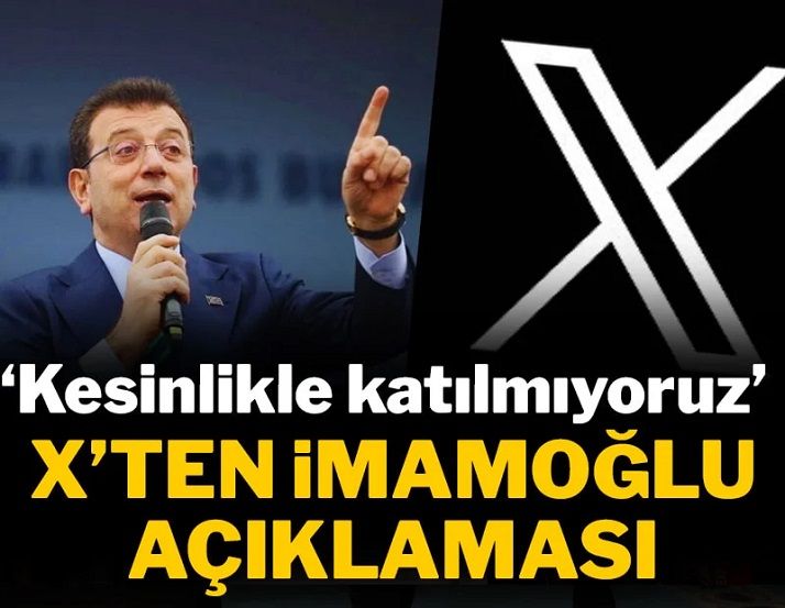 Sosyal medya platformu X, Silivri Cezaevi'nde tutuklu bulunan Ekrem İmamoğlu'nun hesabının engellenmesine ilişkin olarak açıklama yaptı. Açıklamada, "Kararı uygulamakla birlikte karara kesinlikle katılmıyor ve itiraz ediyoruz." denildi.