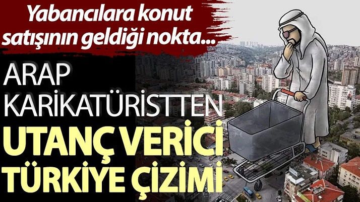 Yabancılara konut satışının geldiği noktayı ise Arap bir karikatürist kaleminden çıkan çizim anlattı.