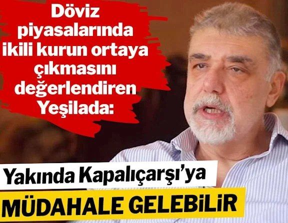 Yeşilada, “Yakında Kapalıçarşı'ya da müdahale beklenebilir, döviz büfelerine komisyon kuralı gibi kısıtlamalar gelebilir. 70'lerdeki eş dost vasıtasıyla dolar arama günlerine geri dönebiliriz. O kadar mafya bir yöntemki kural koymuyor, sözlü…” diye konuştu.
