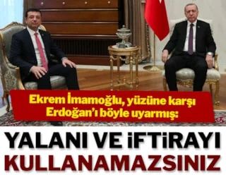 İmamoğlu, Erdoğan’a “Sayın Cumhurbaşkanı, yani böyle şeyler söylüyorsunuz, bakın anıt budur” dediğini anlattı ve “Bana ne dedi biliyor musunuz? ‘Ohoo’ dedi, ‘Sayın Başkan, sen daha neler göreceksin’ dedi bana. Ben de kendisine şunu söyledim: ‘Siz benim Cumhurbaşkanımsınız, millet sizi seçti. Siz yalanı, iftirayı böyle kullanamazsınız.’ Ben bunu adayken yüzüne söyledim.” İmamoğlu “Cumhurbaşkanı Atatürk’tür” ifadelerini kullandı.