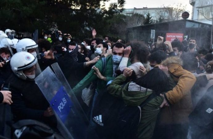 AKP milletvekili aday adayı Melih Bulu’nun Cumhurbaşkanlığı kararnamesiyle Boğaziçi Üniversitesi’ne rektör olarak atanması nedeniyle öğrenciler dün öğleden sonra üniversite önünde eylem yaptı. Barikat kuran polisin kelepçeyle üniversitenin bahçe kapısını kilitlemesi hafızalara kazınırken, eylem sırasında gözaltına alınan bazı öğrenciler akşam saatlerinde serbest bırakıldı.