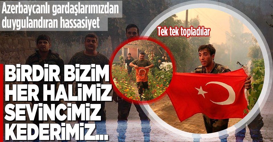 Hisarönü Mahallesi'ndeki yangında da görev yapan Azerbaycanlı itfaiyecilerin, evlerin bahçelerinde asılı Türk bayraklarına karşı duyarlılıkları dikkati çekti.