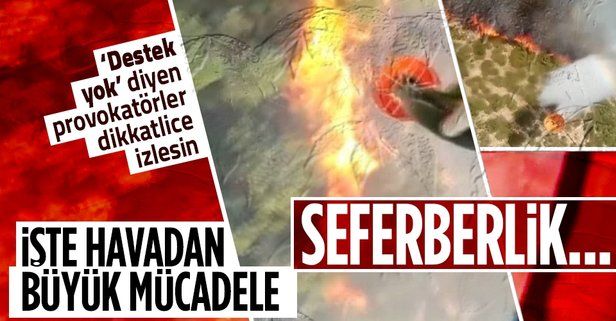 Alevleri kontrol altına alma çabaları kapsamında uçak ve helikopterler de taşıdıkları suyu alevlerin üzerine bırakıyor. Çalışmalar sırasında havadan çekilen görüntüler, mücadeleyi gözler önüne serdi.