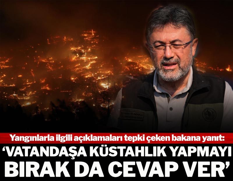 Bakan Yumaklı, önlem alınmamasını, yangın söndürme uçağı bulunmamasını, kovayla yangın söndürülmesini eleştirenlere kendince ayar veriyor...
