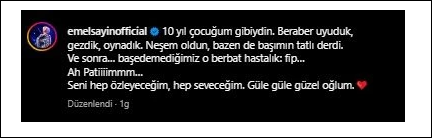 Emel Sayın, Instagram paylaşımında şu ifadelere yer verdi:
