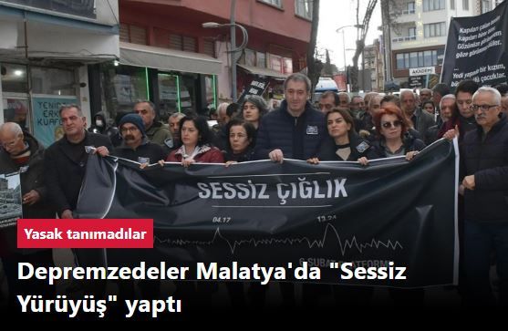 6 Şubat depremlerini 1'inci yıl dönümünde Malatya Valiliği'nin şehir deprem anmalarını yasaklamasına rağmen Malatyalılar kayıplarını anmak için sessiz yürüyüş gerçekleştirdi.