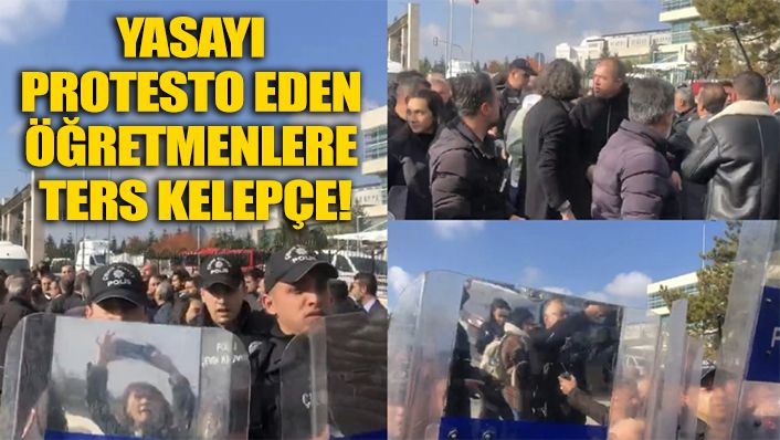 Bir süre sonra sendika üyelerine polis izin vermeyerek müdahale etti. Polis kalkanlarıyla alandan uzaklaştırılmak istenen Eğitimİş Genel Başkanı Kadem Özbay, elindeki kağıdı göstererek yapılan müdahaleye, “Bakın kanun şu, ve yapılan da şu. İşte Öğretmenlik Meslek Kanunu” sözleriyle tepki gösterdi.