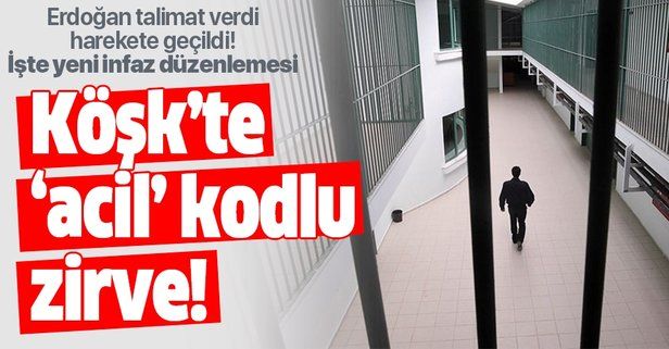 Hürriyet'in haberine göre toplantıda Erdoğan, 18 yıldır bir infaz düzenlemesi kararının alınamadığını anlatarak, "Bir infaz düzenlemesi yapıyoruz. Süreç bizi buraya getirdi" dedi. Koronavirüs dolayısıyla cezaevlerinin boşaltılması tartışmalarının da gündeme geldiği toplantıda Erdoğan, sürecin getirdiği zorunluluklara işaret etti. Erdoğan, "Bu bedeli bir kişinin affıyla da bin kişinin affıyla da ödeyemeyiz. O yüzden geniş tutulmalı. Bu işi bir an önce çözün" talimatını verdi.