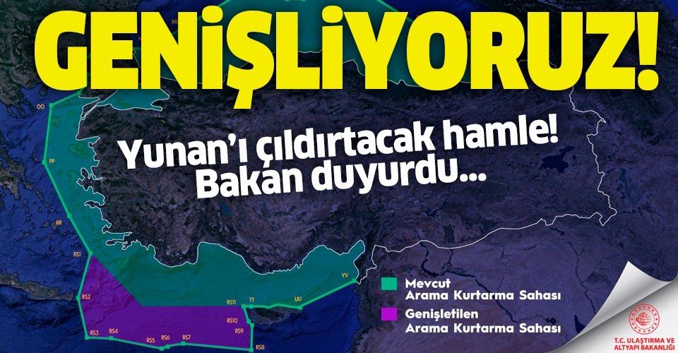 Ulaştırma ve Altyapı Bakanı Adil Karaismailoğlu, "Mavi Vatanımızda arama ve kurtarma sorumluluk sahamızı, Doğu Akdeniz'de faaliyet gösteren milli gemilerimizin arama sahalarını kapsayacak şekilde genişlettik" dedi.