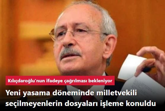 Ankara Cumhuriyet Başsavcılığı Parlamenter Suçları Soruşturma Bürosu tarafından, CHP Genel Başkanı Kemal Kılıçdaroğlu'nun da aralarında bulunduğu yeni yasama döneminde milletvekili seçilemeyenlere ait 350 dosyası işleme konuldu.