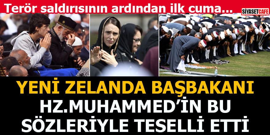 Namaz öncesindeki kısa konuşmasına hadisle başlayan Jacinda Ardern, "Peygamber Muhammed dedi ki 'karşılıklı şefkat, merhamet ve sempatileri ile inananlar tek bir beden gibidir. Vücudun herhangi bir kısmı acı çekerse, tüm vücut acı hisseder.' Yeni Zelanda'da sizinle. Yasta, biz biriz." ifadeleri kullandı.