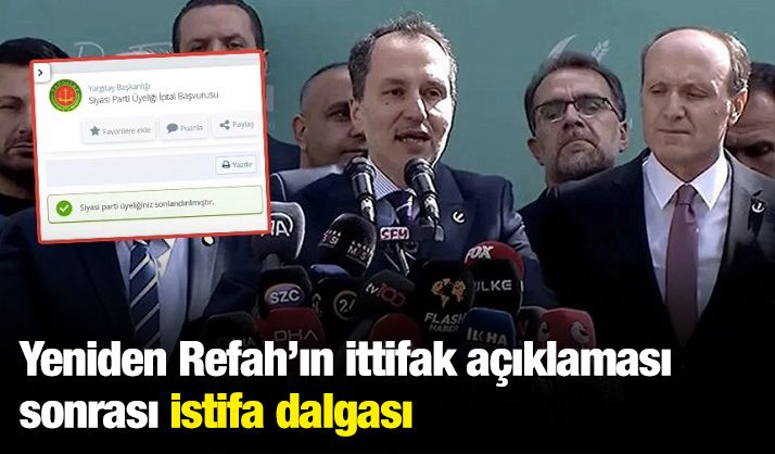 Yeniden Refah Partisi Genel Başkanı Fatih Erbakan'ın Cumhur İttifakı'na katılım kararı sonrası partide istifa dalgası başladı. Sosyal medyada parti mensubu olduğunu belirten bazı hesaplar, edevletten ekran görüntüleri eşliğinde istifa kararı aldıklarına ilişkin paylaşımlarda bulundu.