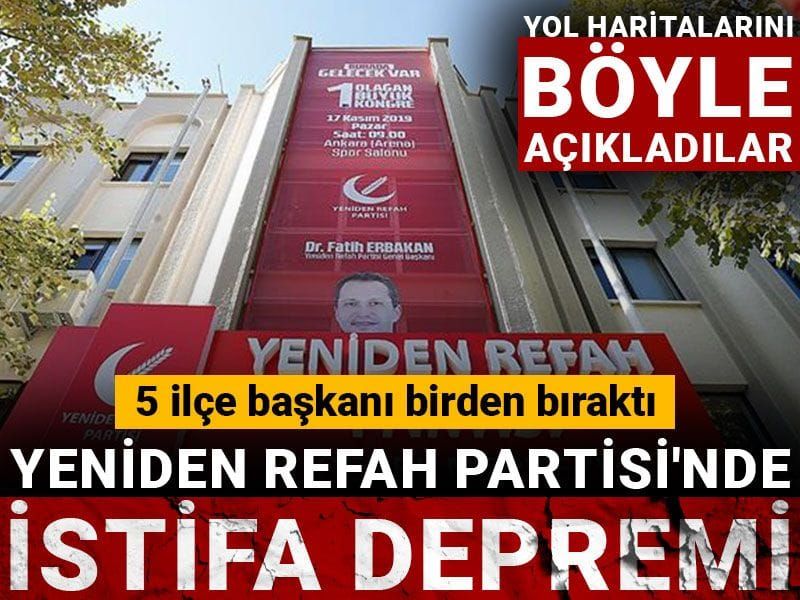 Yozgat’ta Yeniden Refah Partisi'nin 5 ilçe başkanı partiden istifa etti. Yeniden Refah Partisi Çekerek İlçe Başkanı Hacı Osman Bakır, yaptığı açıklamada, uzun süredir teşkilatlar arasında iletişim ve karar süreçlerinde istişare eksikliği gibi nedenlerle istifalarını genel merkeze gönderdiklerini duyurdu.
