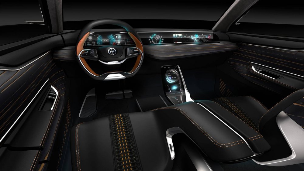 İçeride, tasarım vahşi bir şey değil. Ön koltuklar sadece orta konsola bağlı olarak yüzüyor gibi görünüyor. Arka koltuklar, orta kol dayanağına tutturulmuş gerçek koltuk minderleri ile iki parçalı işler. Koltuk arkalıkları da araca bağlıdır. Tıpkı ön koltuklarda olduğu gibi, rears dijital bir orta konsol ekranı alır. Gösterge tablosu, gösterge panelinin ve bilgieğlence ekranının gizlenmesini sağlar, her ikisi de tire genişliğini çalıştıran bir ekran gibi görünür.