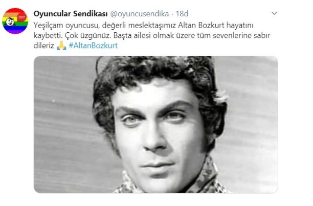 Yeşilçam oyuncularından Altan Bozkurt’un vefat ettiğini Oyuncular Sendikası, Twitter hesabından duyurdu.
