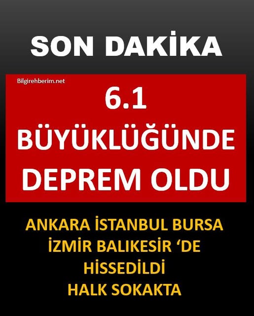 6,1 büyüklüğünde şiddetli deprem oldu.Deprem İstanbul Ankara İzmir Bursa Balıkesir'de kuvvetli hissedildi.Bakan Yerlikaya açıklama yaptı.