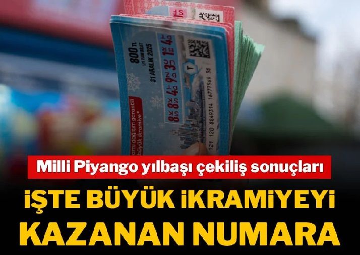 Milli Piyango yılbaşı çekiliş sonuçları belli oldu. Büyük ikramiyeyi kazanan ve diğer tüm ikramiyeleri kazanan numaralar belli oldu. 31 Aralık 2025'te gerçekleştirilen çekiliş sonuçlarına göre büyük ikramiye 3031385 numaralı çeyrek bilete çıktı. Biletin isabet ettiği şehirler Esenyurt/ İSTANBU, Ümraniye/ İSTANBUL, Akşehir/KONYA oldu. Bir bilet satılmadığından dolayı ikramiye 4 yerine 3'e bölünecek.