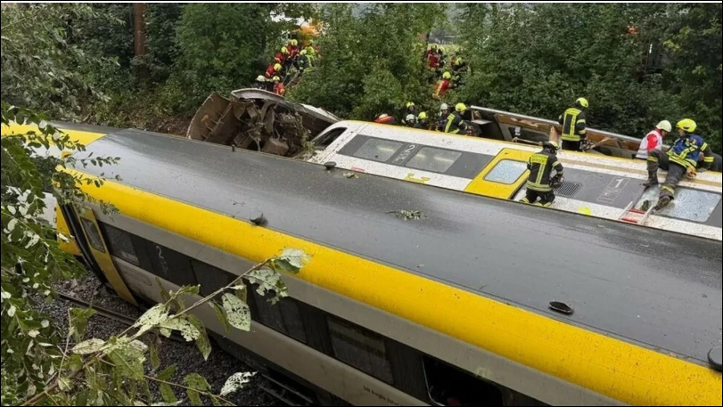 Almanya'nın Baden-Württemberg eyaletinde içerisinde 100 yolcu bulunan trenin raydan çıkarak devrilmesi sonucu ilk belirlemelere göre 3 kişi hayatını kaybetti, 34 kişi de yaralandı.