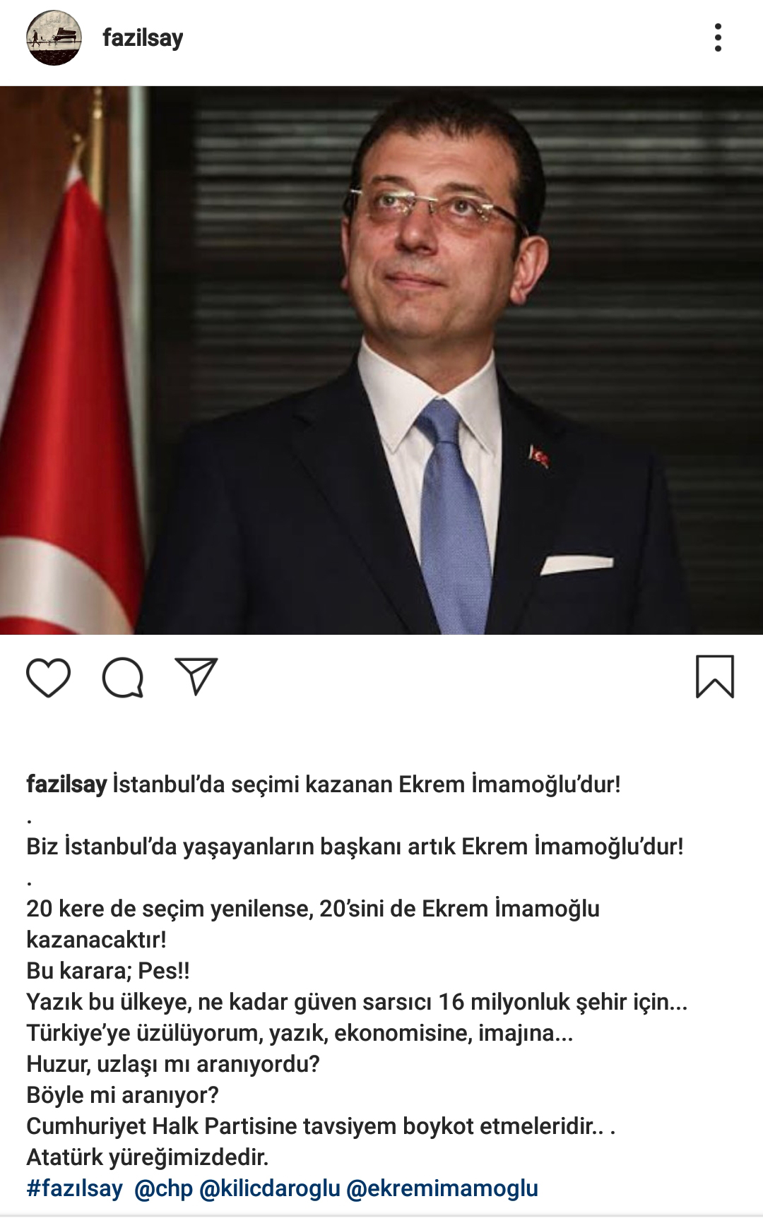 İBB Başkanı Ekrem İmamoğlu, YSK'nın kararının ardından "Artık sanatçısı da, iş insanı da, işçisi de, öğretmeni de, memuru da konuşacak, herkes konuşacak!"dedi, birçok ünlüden destek geldi.